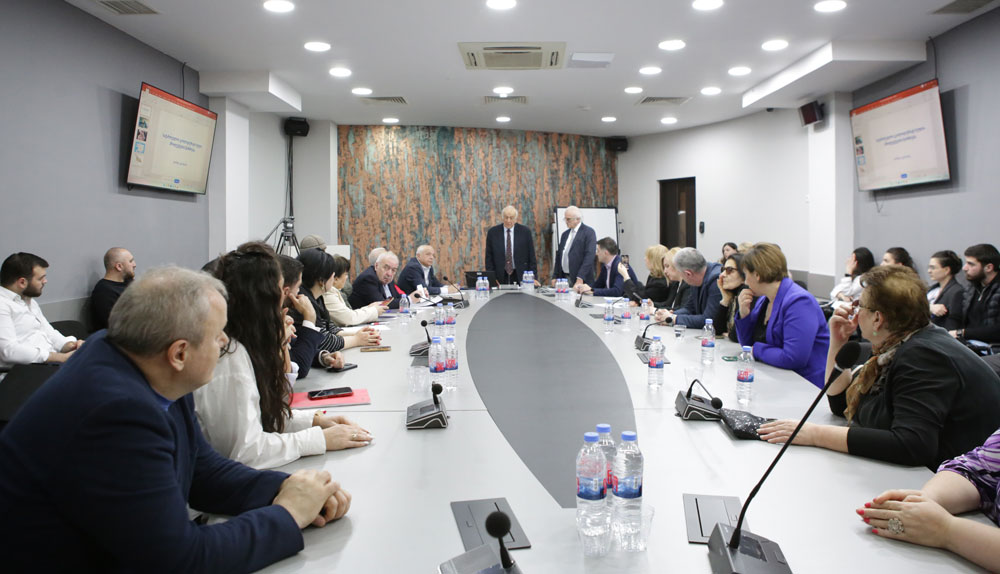 ლექცია-პრეზენტაციის შემდეგ გაიმართა დისკუსია, რომელსაც უძღვებოდა უნივერსიტეტის სამართლისა და კრიმინოლოგიის სამეცნიერო-კვლევითი ინსტიტუტის დირექტორი, პროფესორი მალხაზ ბაძაღუა.