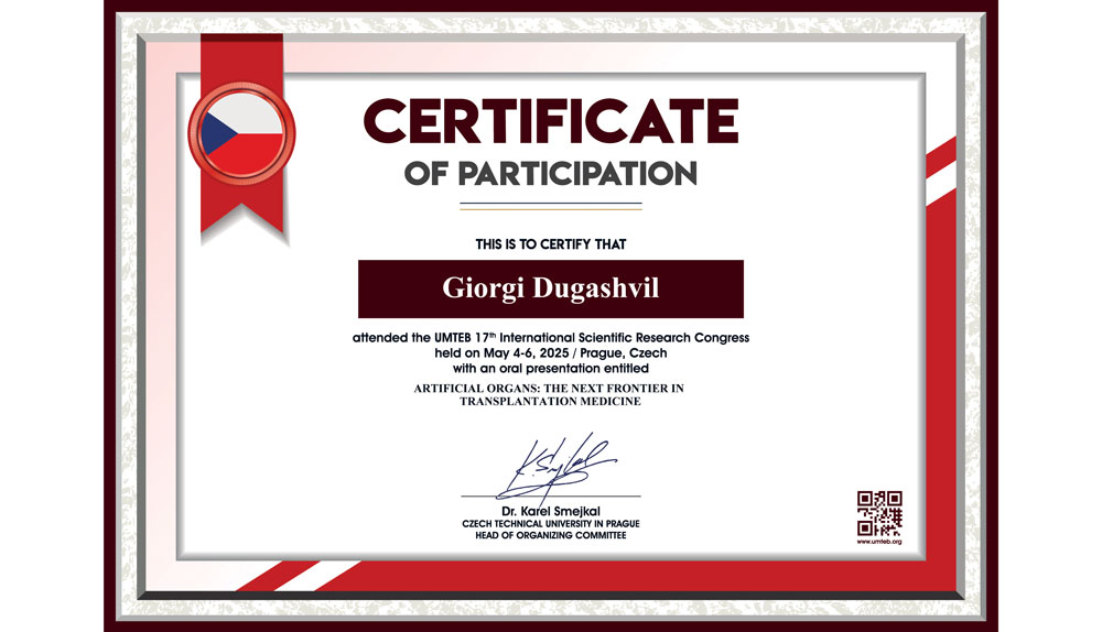 2025 წლის 6 მაისს გრუნის პროფესორის - გიორგი დუღაშვილის, ხელმძღვანელობითა და თანაავტორობით, უნივერსიტეტის სტუდენტებმა პრაღის საერთაშორისო სამეცნიერო კონგრესზე წარადგინეს მოხსენება: ,,ARTIFICIAL ORGANS: THE NEXT FRONTIER IN TRANSPLANTATION MEDICINE’’.