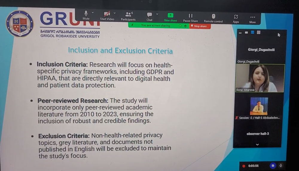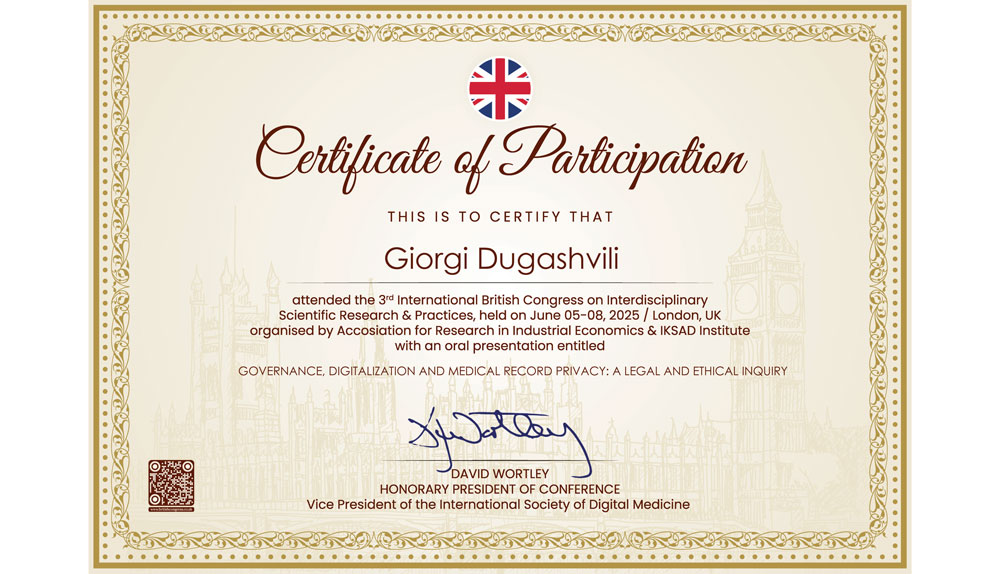 პროფესორ გიორგი დუღაშვილის სამეცნიერო ხელმძღვანელობითა და თანაავტორობით, გრიგოლ რობაქიძის უნივერსიტეტის მედიცინის სკოლის დეკანის მოადგილემ, საჯარო ადმინისტრირებისა და პოლიტიკის სკოლის დოქტორანტმა - ილონა ბიტაროვამ, ლონდონში გამართულ ინტერდისციპლინურ სამეცნიერო კონფერენციაზე წარადგინა სამეცნიერო ნაშრომი: "GOVERNANCE, DIGITALIZATION AND MEDICAL RECORD PRIVACY: A LEGAL AND ETHICAL INQUIRY".