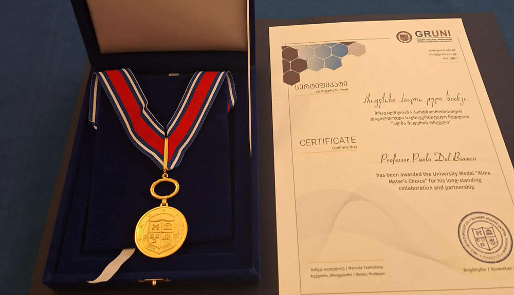 უნივერსიტეტის რექტორის, პროფესორ მამუკა თავხელიძის გადაწყვეტილებით, ფონდის უხუცეს ვიცე-პრეზიდენტს, პაოლო დელ ბიანკოს, გადაეცა უნივერსიტეტის სერტიფიკატი და საპატიო მედალი: „ალმა მატერის რჩეული“.